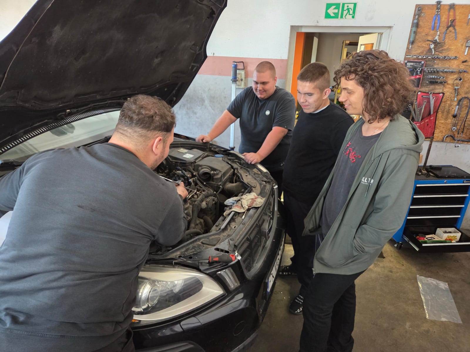 Uzupełnieniem spotkań były wizyty w lokalnych zakładach: fryzjerskim, mechanicznym oraz piekarniczym. Podczas odwiedzin uczniowie mieli okazję zobaczyć, jak wyglądają współczesne formy rzemiosła i usług, które — mimo rozwoju technologii — nadal opierają się na doświadczeniu, umiejętnościach manualnych i wiedzy przekazywanej z pokolenia na pokolenie. Piekarz zapoznał uczestników z procesem wypieku chleba, mechanik przedstawił zasady diagnozowania i naprawy pojazdów, natomiast w zakładzie fryzjerskim uczniowie poznali etapy pracy oraz narzędzia wykorzystywane w tym zawodzie.